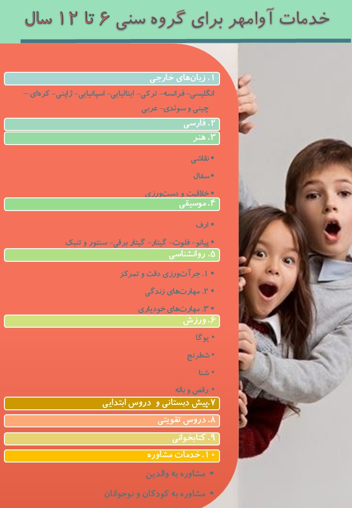 خدمات مجموعه آوامهر برای گروه سنی 6 تا 12 سال